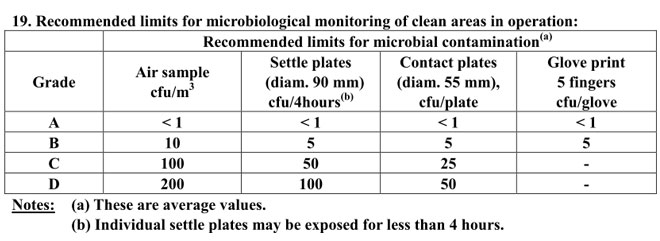 目前,制藥行業(yè)采用最廣泛的設(shè)計(jì)標(biāo)準(zhǔn)是由歐盟制定的《歐盟良好生產(chǎn)程序指南》(EU GGMP)。圖 5 顯示了歐盟 GGMP 中建議的空氣懸浮顆粒分類標(biāo)準(zhǔn)。下圖顯示了每種微生物污染等級(jí)的推薦限值。